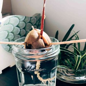 いつかやろう…やろうと思っていた アボカドのアレ🥑🌱😁 根っこがチロッと伸びてきて 芽も出そうなカンジ❓️