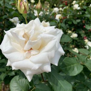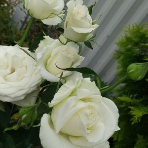 パスカリ 数々の賞を受賞、、、らしい。 耐寒性・耐暑性に優れて丈夫で育て易い純白品種です。 札幌正午16℃ 風がひんやり、肌寒いくらいですが、薔薇🌹には良いのかしら??! 虫も来ず、葉焼けも無く、次々と咲いてくれてます。