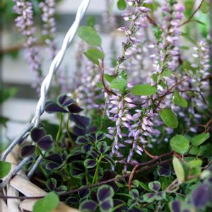 玄関前の寄せ植え、カルーナのガーデンガールズ スーパーサルビア ロックンロール ピンクスパイダー 名前が長いけど、咲いてきました❣️ 四角い大きな鉢に、7種類の花を植えてあります‼️