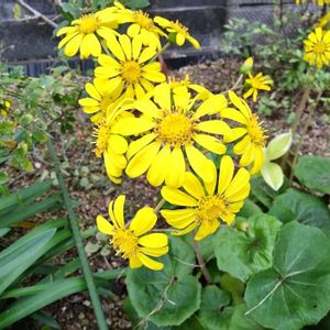 ツワブキ(石蕗) 近くを通り、石蕗が沢山咲いてるお宅を見つけて、 家の前迄行き写真🤳撮りました。此の倍の花が咲いていました。 仕事帰りに