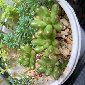 多肉さんご紹介48 【名前教えてください】 →判明しました!! 小人の祭りさん 1番手前の黄緑のコたちです。 中央のコからの茎から分岐する形で3つ枝分かれしてます。 名前を知りたいコの後にピント📷合ってて、判断しづらくてすいません💦 AIによると、、 「虹の玉」「銘月」の候補がでるんですが、 どれも手持ちの虹の玉や銘月とは一緒に見えなくて。。。