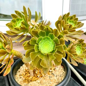 カット苗。 土に植えて根が出るのを待っています。 まだ赤くて可愛い子達です(^^) ④⑤枚目 ニョロ〜ンと伸びてる家では最大の暴れ多肉です。 もう5年? 家にいるけど、この子は一体誰でしょう。。? 回答は下のタグ🏷️で。。 カットしても棒だけになって、下から葉は出ません。 アエオニウム属なので、秋にカットして仕立て直す方が良いと分かってはいるけど。。。 何故かそのままにしています。 丈が伸びすぎて、頭が重いのでうなだれていますよね。。。