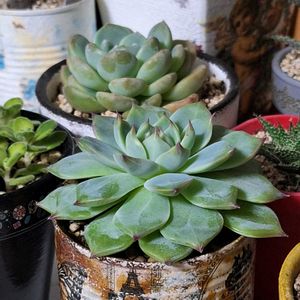 エケベリア属 ホワイトゴースト✨️✨️ 夏に乱れまくったエケちゃん、葉挿しっ子が出来ると嬉しいね🥰 ③④⑤ほぼ葉挿しっ子の寄せ植え😅 🏷毎月13日と14日は葉挿しの日 🏷かずの寄せ植え