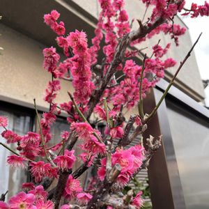 実家の梅が満開っぽいので🌸📸 ③塀の上に置いている多肉たち🩷 雨があまり当たらなくてよく育ってくれている♪ピンククリスタルと桃太郎(*˘︶˘*).。.:*♡︎