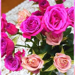 今朝お庭から取ってきた 薔薇さんたち🌹💫 しばらくここで楽しませて 貰います🧚♀️🍃