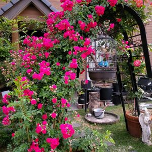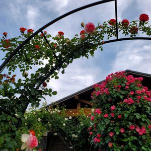 こんばんは🙋 明日は6月の暑さになるらしい😨 去年の春に植えた春風さんと ピエール挿木さん🌹 一年じゃまだアーチにここまで😅 来年に期待です❣️