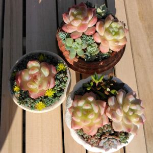 10月の中旬のハズですが気温29℃とはどういうことなんだ…😅 1️⃣子株✂️してとりあえず寄せ 2️⃣ツメレンゲ咲きそう😆 3️⃣Sophieさんに頂いた子たちは無事みんな夏越しできました😆 4️⃣夕波さん、大きくなりそうだから解体するかな…