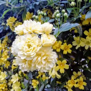 カロライナジャスミンの次はモッコウバラ このお宅のそばでよかった!