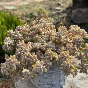 多肉植物 くすみカラーが可愛いなぁ❣️ メルカリでカット苗を購入して1年ちょい。 二枚目から随分成長しました。 いい感じの大きさ、色味にまとまった鉢です。 姫は強すぎるかな、、 伸びる子(クラッスラ)や派手な子(桜吹雪)はたまたま別鉢に👍🏻