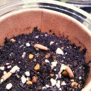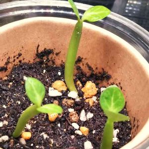 ホムセンで売ってた種、アデニウム・アラビカム、3日で発芽した!凄いな。簡易温室内でヒーターのおかげかな。LEDとフルスペクトルライトにあとリキダスかけたし🤔