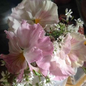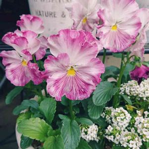 パンジーももこ💞 今日のお花 フリフリのとっても可愛いパンジーももこちゃんです💞 一回り小さいさくらこちゃんは まだ開花せず🧐 ももことさくらこの共演が楽しみです🎶💞
