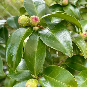 🏷️ 今日のお花 サザンカ 我が家のサザンカは まだ硬い蕾ばかり 毎年 12月にならないと咲きません😁 それも 今 ピンク🩷になっている所が 1番花の咲く所と 決まっているようです🤗