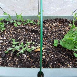 スナップえんどう、定植しました。 5つ種をまいて、4つが発芽しました😊 一緒に種をまいた、うすいえんどうはまだ 1つだけしか発芽していません⤵️