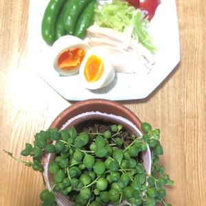 おはようございます☺️ 昨日はとても寒かったのですが、子供達と午後から庭に出て家庭菜園の観察③、今シーズン初のスナップえんどうの収穫をしました🎶 皆で数えながら、1つ、2つ…今回は18個😊 今朝、上の子が採れたスナップえんどうと豆腐、なめこの入った味噌汁作ってくれました💕