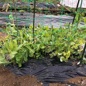 スナップえんどう 今年は雪も降らず暖かいので生育がよく、10月に植えたスナップえんどうがドーム型カバーいっぱいに育ったのでカバーを外して網をかぶせました。去年4/21picよりもたくさん生えているので、収穫楽しみです。 今年3月初旬にまたスナップえんどうの種を植えました。今日はみぞれ雪❄️カバー外して大丈夫かな?
