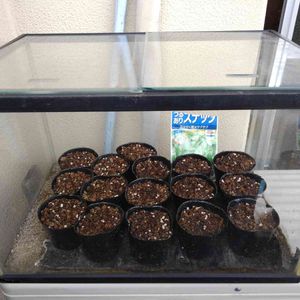 昨年11月に種蒔きしたスナップエンドウ豆が寒さと強い風に振られて枯れて全滅で消沈 すぐにたねまきをしました ベランダにある水槽にポットを並べ ガラスの蓋で保温 小さなミニ温室が出来ました😊 上手く育って定植出来ることを願う