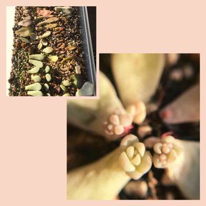 おはようございます✿゚❀.(*´▽`*)❀.゚✿ 寄せ植えの時にポロリした子たちの葉挿しベットがだんだん狭くなってきたなぁ〜と見てたら、結構ベビーが顔を出しててしかもピンクの根っこもある〜〜〜〜〜なんて健気で可愛いのっ(∩˃o˂∩)♡ 思わずマクロレンズパシャッ! Σp[【◎】]ω・´) もうちょい広めにしなきゃかな〜🤔
