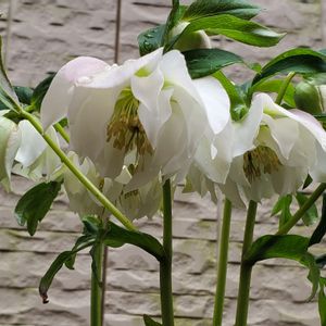 クリスマスローズ フリフリのホワイトダブル 葉裏にうっすらピンク色も見える