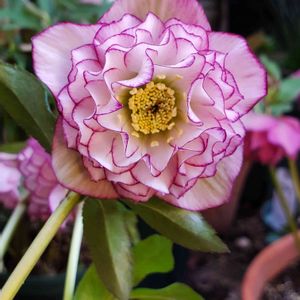 クリスマスローズ 多弁ピンクピコティ 花は沢山咲いたけど、花が小振りで花弁の数も少なくなってきてる 何故かな~?