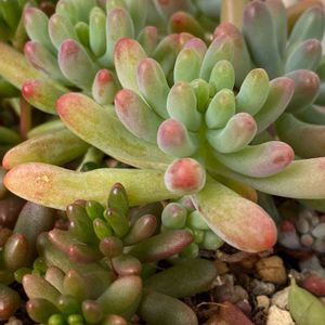 小さなセダム薄化粧ꔛ♥💓 ほんのり染めて、成長点から花芽 根元に子株 ((ω))ヾ(*・ε・´*) オオキクナーレ♪