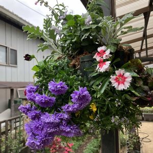 先日 ハンギングを習って セットを購入 早速挑戦! 12個の花苗 中々バラン良く出来ない😅 昨日の朝 ????何か?動いてる? 小さなお客様がおりました。 気に入ったのか? 今朝も居ます。