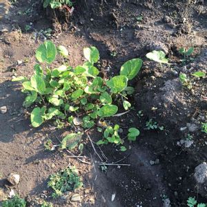 畝の外にこぼれ種牛蒡が育っています。