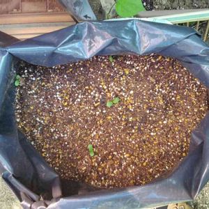 9月蒔きの袋栽培ゴボウ。良く育ってそろそろ間引きです😊