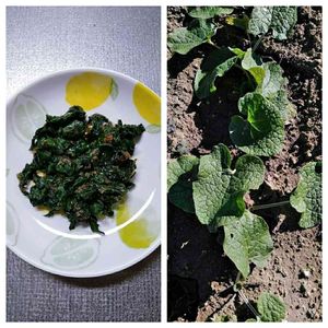 ゴボウの葉っぱです。小さい葉っぱですが、これも食べてしまいます~。塩ゆでして、アクをとり、ゴマ油とだし醤油で、いただきました~。これは、かなりうまいです。