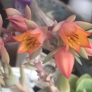 咲きました ピーチプリデ エケベリア属 花芽切るのが惜しくて、咲かしちゃいます