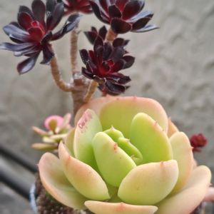 カットして3本植えたナッツ缶の黒法師 昨年の夏に雨ざらしで 2本がダメになってました 空いた所に葉挿しで育っていたピーチプリデを植えて お気に入りの寄植えに🥰 2枚目の鉢の写真を撮って片付けしていたら 鉢の裏側に…あれ?? もしかしたら綴化になるのかな?そうだったら嬉しい♡(˃͈ દ ˂͈ ༶ ) 最後は艶姿の花が満開になりました♪ 12月に真ん中の変化を見つけてから咲き終わるまで4ヶ月 沢山子株も残してくれてありがとう🌼 🏷️9日は黒法師の日
