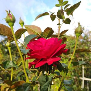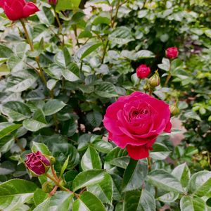 こちらは遅咲き組のバラ🌹 名前よりも明るい赤色になってます。 もう少し真紅の方が名前に合ってるよ〜