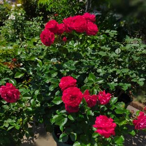 中輪の房咲き深い赤色のばら 与野公園に10年ぶりに行ってみました 素敵なバラさんたちが揃っています