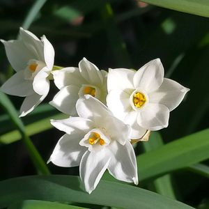 ペーパーホワイト 今年は水仙の開花が遅く これは全て 2年前の今日2月9日に撮影したもの 幸い、この地には降雪がなく 暫し、雪景色のように 白い世界へ。 それにしても2年前と同じ日だというのに まだペーパーホワイトは一度しか見ていません。 この辺りの水仙の開花は年々遅くなっているように思います。 ( 2023年2月9日撮影) 雪の災害がありませんように 願っています