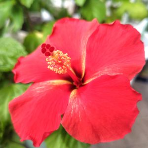 おはようございます。 夜中の雷⚡️ あまり眠れなかった 雨上がりは お花が生き生きしてますね 久しぶりに 我が家のハイビスカスが咲いていました。
