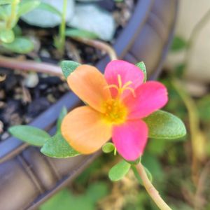 おはようございます。 朝晩 すっかり凌ぎやすくなりました。 ツートンカラーの ポーチュラカの花 カワイイ🧡🩷 ザクロソウ このコちっちゃくて 地味だけど スキ💓