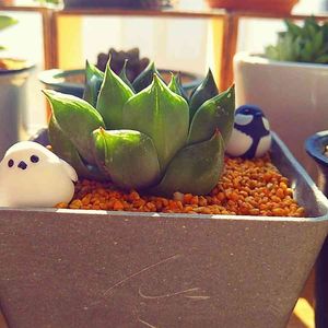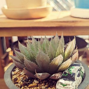 本当我慢出来ないんですよね。。。これで最後最後って言いながら。。。ハオルチアを2種類上田園芸さんでお迎えしてしまいました。。 京の華ははじめからあまり元気がありませんでしたが、息子に熱くオススメされたら断れず。。。 もうひとつも300円に値下がり?していたあきらかに外葉の色が悪い子でしたが。。。家で水やりしたら真ん中の色味がすぐに青々してきたので希望を持っています(^^) 名前。。何でしょうか?^^; 図鑑で見てもなかなかどれか分かりません。。。 どちらも元気に大きくなあれ!