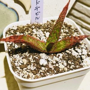親株が腐り始めたので影響が出る前に株分けしたアロエ レッドデビル 暑いけど夜に少しだけ水遣りしました 来週はずっと曇りっぽいね