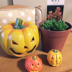 こんばんは(^^) 唯一狩った多肉さんが「虹の玉」 1番ありそうなものがなかったのです😢 初めてお店で見た気がします💕 陶器のデカかぼちゃ🎃 3兄弟の1つですが、もう10年以上も前のもので、色が薄くなってる…😓