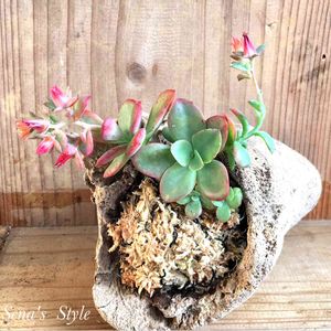 お花がとってもキュートで一目惚れした子。 流木に おひとりさま。 「エケベリア・久米の里」と教えていただきました。 ありがとうございます。