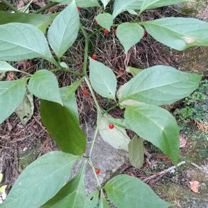山道に真っ赤なハダカホオズキが実っていました、疲れを癒やして貰えます🔴🌿 山地の林縁に生えています。 葉は卵状長楕円形又は長楕円形で長さ8~18cm位、幅3~10cm位 先は尖り基部は狭まって短い柄となります。 果実は球形で赤く熟します。 ナス科 ハダカホオズキ属