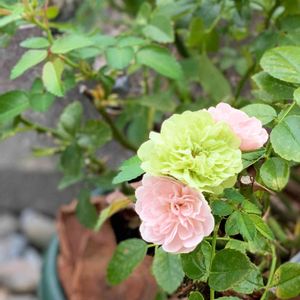薔薇って 難しいなぁ😓 春は、 あまり綺麗に咲かなかった グリーンアイス💦 2番花は 花数は少ないけど 綺麗に 咲いてくれました〜💓 ひと株で ピンク、ベージュ、グリーンのお花が見れるので 「今日は どんなかな?」と 毎朝 お庭に出るのが 楽しみです😌