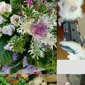 今日のお花 葉牡丹 レインボー葉牡丹 1株でいろんな色合いと ギャザーが入ってる所が お気に入りです。 左下 ポリアン 真ん中 バギーでくつろぎ中 右下 ディズニー福袋を買う為 開店3時間待ち.まだかな 上右 お正月用に新調した スタジャン.似合うかな