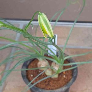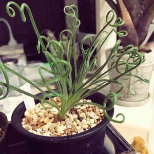 albuca namaquensis 水切れ気味で管理すると葉が巻いてくるアルブカですが、水切れ気味で管理してたら葉が垂れてきました。 懸崖や吹き流しの様に見えます。水を与えると後日葉が立ってきましたが、ここまで葉が垂れるのは他に原因があるかも知れません。