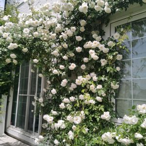 我が家のつるアイスバーグ、満開になってきています! 南側壁面を飾ってくれています🙆