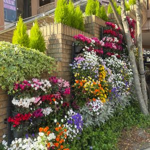 ふるさとの駅の 老舗花屋さんの壁面緑化🌸 徒長してきたから それはそれで 豪華✨✨ こんな壁 欲しいわぁ❗️