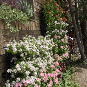 ふるさと神戸の いつもいく 老舗花屋さん の 壁面緑化の ビンカ ニチニチソウ 徒長して咲き乱れ✨✨ その姿もまたステキ💕