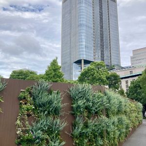 帝国ホテル東京の右隣り"TOKYO CROSS PARK構想の内、南地区」(サウスタワー等)にかかる再開発工事が始まり、カーテンウォールに覆われたが、これにも壁面緑化が施されていた