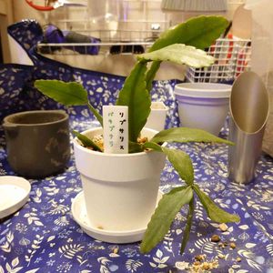 何度も失礼します。 リプサリス1,2号の鉢のデザインを合わせる為、植え替え&鉢の変更をしました… ゼブリーナ、セロウムすいませんです… にしてもリプサリスはシャボテン、多肉植物と聞いていましたが、元の土は普通の観葉植物を買った時と同じ、水捌けの悪い粘着質な土だったのが気にはなりますが、まあ多肉・観葉の土にしたので無問題と信じたい… そしてリプサリス1号も品種不明ですが、ケレウスクラの気がします…
