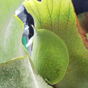 ■Platycerium OMO🦇 ・プラティケリウム オモ ※P.willinckii × P.diversifolium 知る人ぞ知るオモ、最も白いと言われるオモ、でも謎のオモ。謎なのは、私が知らないだけかもですが😮 我が家のビカクのいくつかは葉焼けさせてしまったので、この子は気をつけないと。アジアンジジイさんによると、 〜とりあえずオリジナルと言われている株の血統になります。 どのような葉芸になるかは育成環境にかかってるみたいですね〜 とのこと。責任重大。冬の置き場所、確保しないと。。。 最高気温35℃、最低気温27℃
