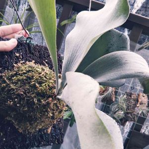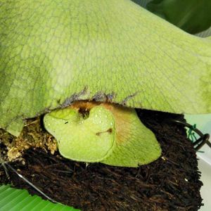 Platycerium OMO👏 いちさんにレクチャーしてもらいながらオペが終了しました!ありがとうございました😊 予想外のスタイリッシュな七三分けに笑🤣 新しい貯水葉と胞子葉の展開が楽しみでワクワクです。ビカク沼って深いなー…🤔 上オペ前 下オペ後
